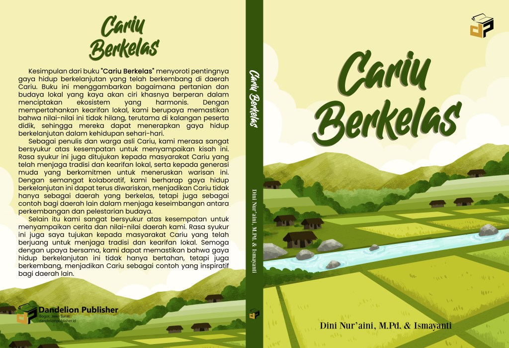 Kesimpulan dari buku “Cariu Berkelas” menyoroti pentingnya gaya hidup berkelanjutan yang telah berkembang di daerah Cariu. Buku ini menggambarkan bagaimana pertanian dan budaya lokal yang kaya akan ciri khasnya berperan dalam menciptakan ekosistem yang harmonis. Dengan mempertahankan kearifan lokal, kami berupaya memastikan bahwa nilai-nilai ini tidak hilang, terutama di kalangan peserta didik, sehingga mereka dapat menerapkan gaya hidup berkelanjutan dalam kehidupan sehari-hari.